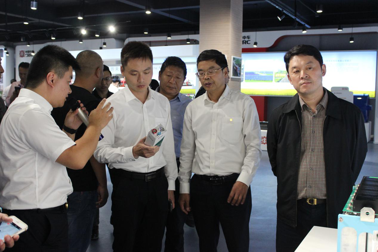 (图为企业家代表听取远致达董办主任蔡斌对超级电容产品的介绍)